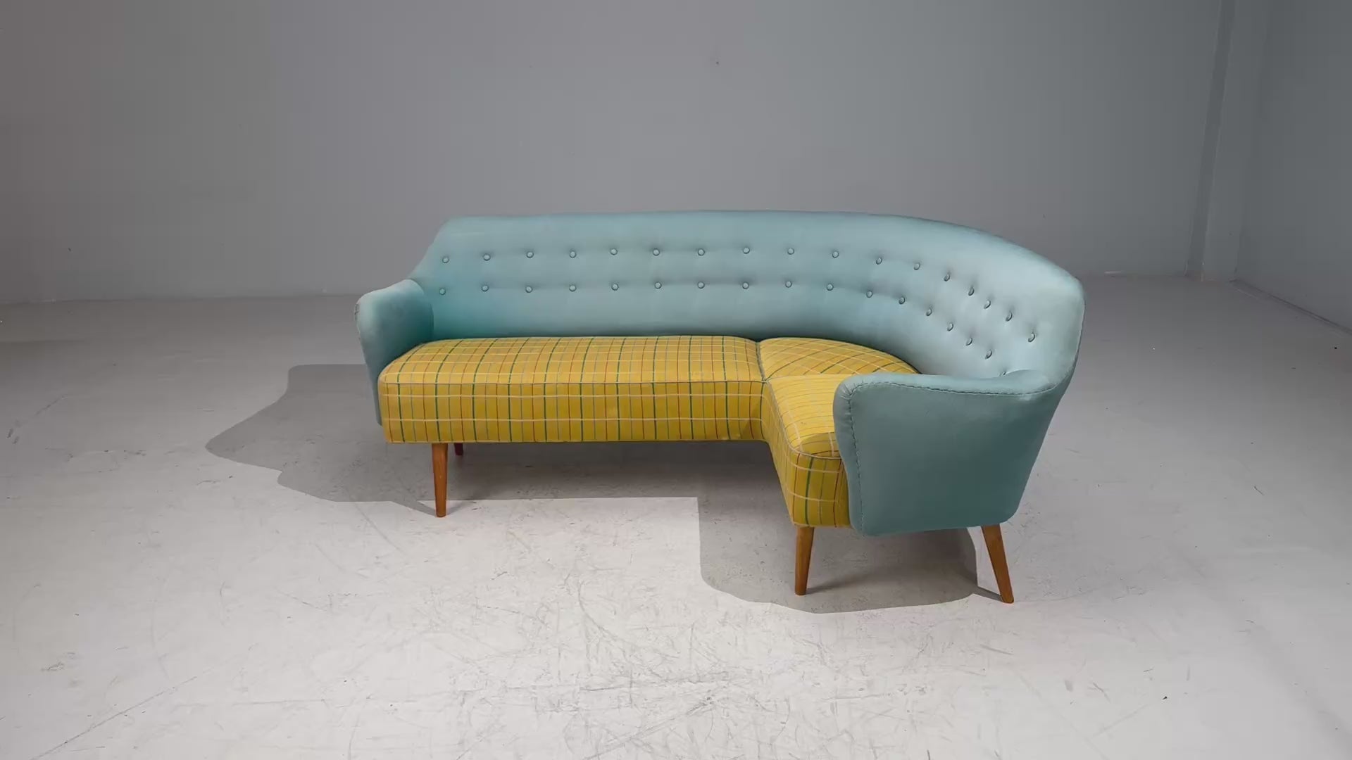 Danish Modern, Corner Sofa, Fabric, Wood, Denmark, 1950s