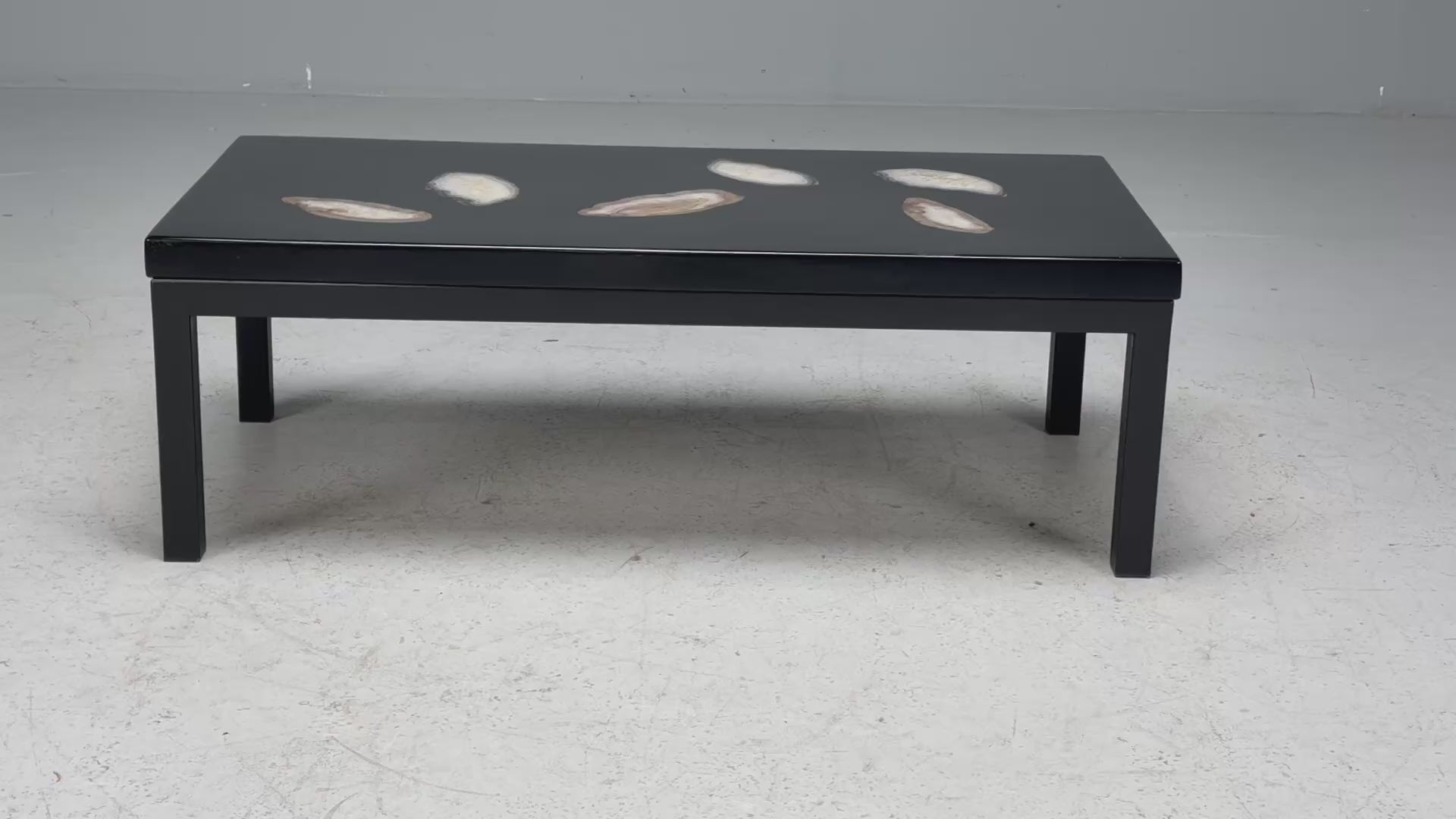 Ado Chale, Belgian Mid-Century Modern, Black Resin, Agate, Coffee Table, Belgium, 1990s