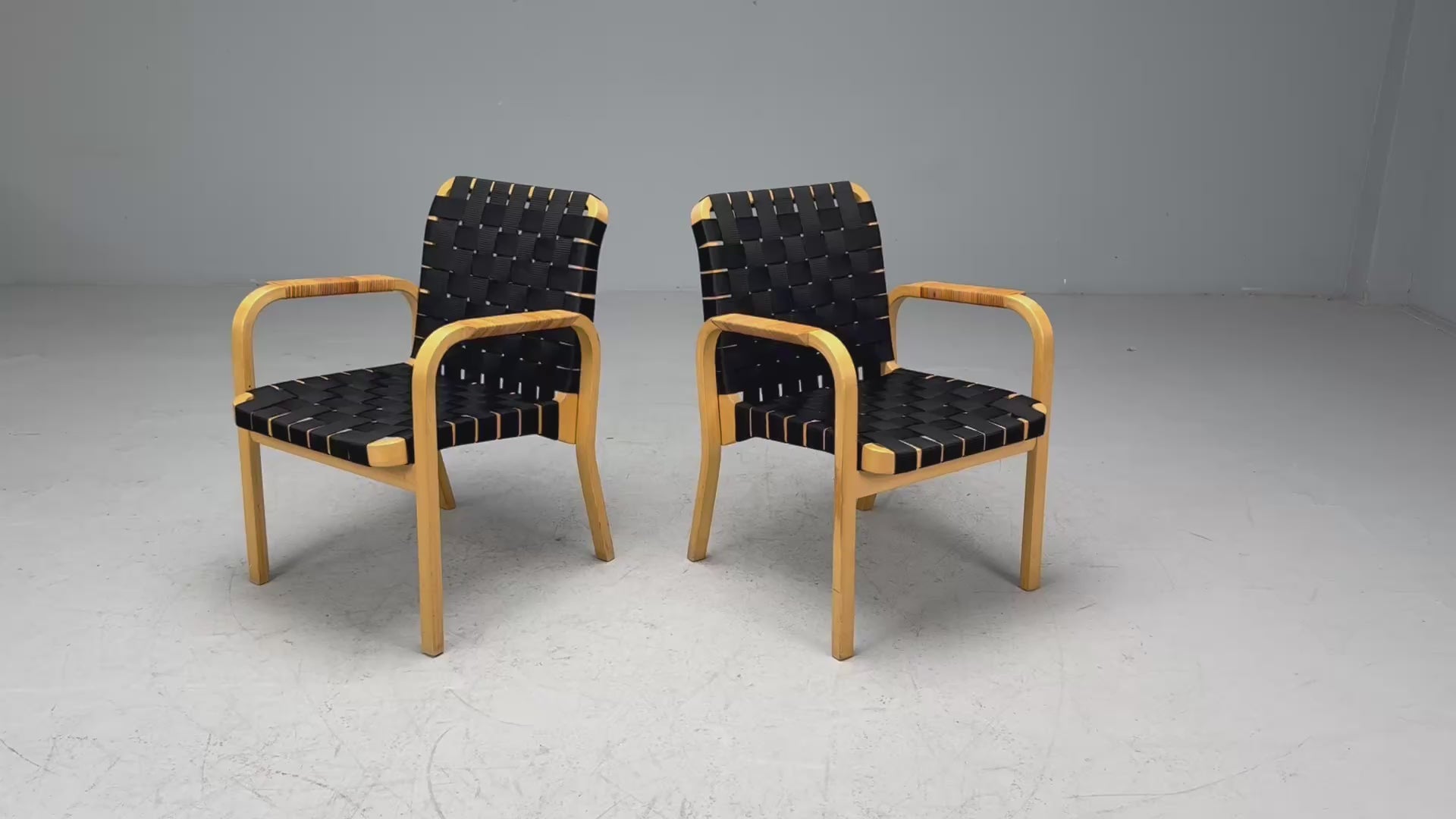 Alvar Aalto, Artek, Birch, Rattan, Black Linen Webbing, "Model 45" Armchairs, Finland, 1980s