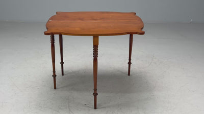 John and Thomas Seymour Attribution, American Sheraton, Serpentine Inlaid Card Table, Boston, 1810 American Sheraton mahogany hinged top serpentine card table with figured cross banded tulip wood, birch and satinwood inlays, outset corners, and terminating on the original bulbous reeded turned tapered legs, Early 19th Century. Attributed to John and Thomas Seymour, Boston, Massachusetts, Circa 1810. Mahogany, Tulip Wood, Birch, Satinwood; Boston, USA c. 1810 Height: 29 inches, Width: 36 inches, Depth: 37.75 inches (fully open)