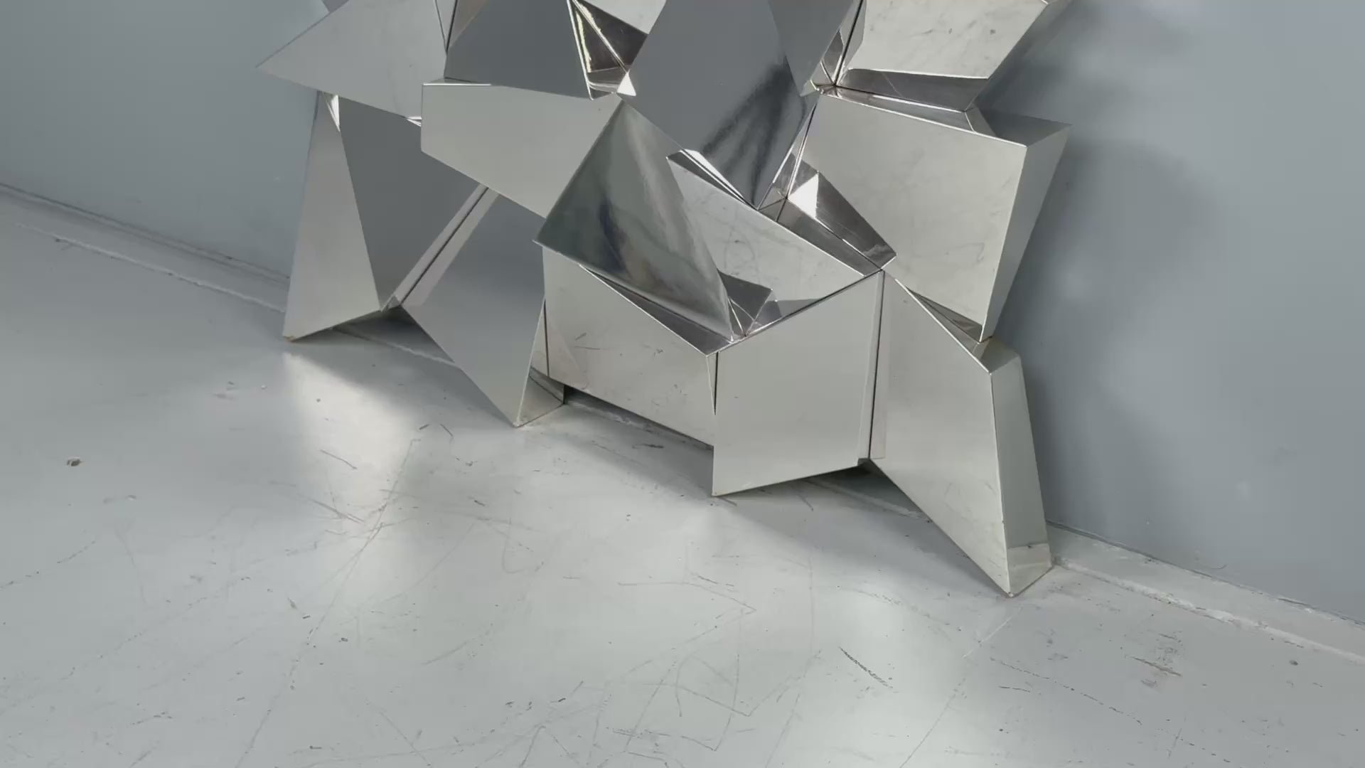 Brutalist Style, Geometric Chrome Wall Mirror, American, 2010s