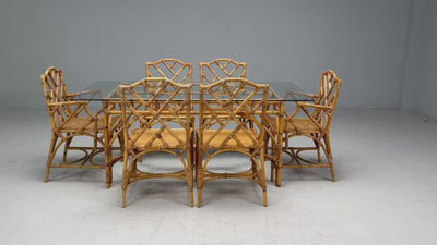 Dal Vera, Mid-Century Modern, Bamboo, Cane, Glass, Dining Table, Italy, 1950s