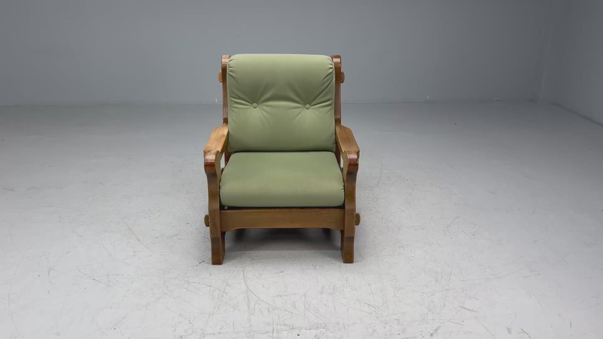 Danish Modern, Oak, Green Nubuck, Brutalist Lounge Chair, Denmark, 1960s