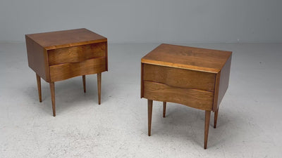 Edmond J Spence, Swedish Modern, Maple, Rare Wave Nightstands, 1950s