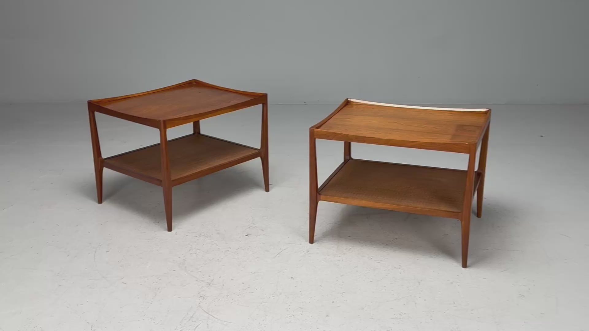 Heritage, American Mid-Century Modern, Walnut, Cane, End Tables, USA, 1960s
