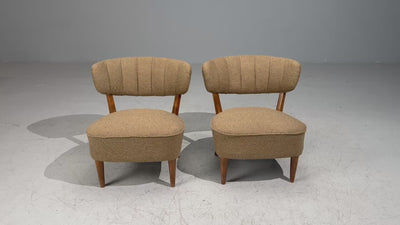 Lisa Johansson-Pape, Finnish Mid-Century Modern, Slipper Chairs, Brown Boucle, Wood, Finland, 1940s