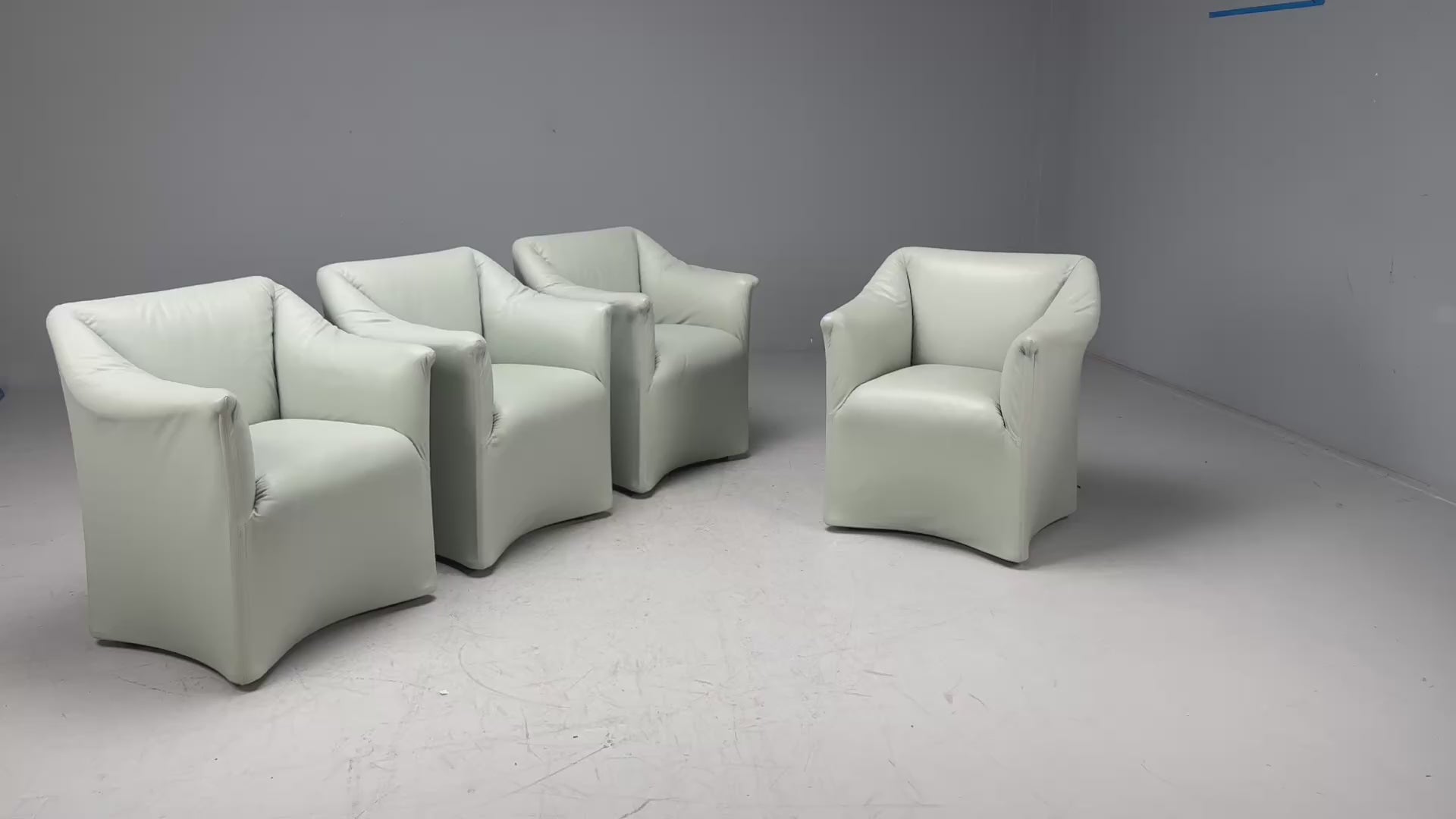 Mario Bellini, Italian Mid-Century Modern, Light Green Leather, Four "Model 684" Armchairs, Italy, 1980s