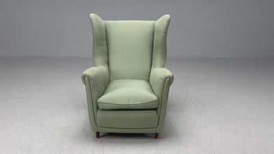 Melchiorre Bega, Italian Mid-Century Modern, Green Fabric, Wood, Lounge Chair, Italy, 1950s