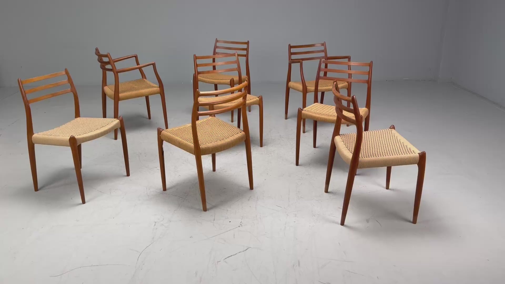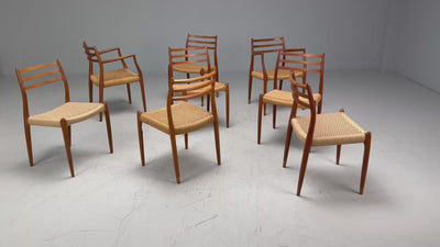 Neils O. Möller, Danish Mid-Century Modern, Paper cord, Teak, Eight "Model 78" Dining Chairs, Denmark, 1950s