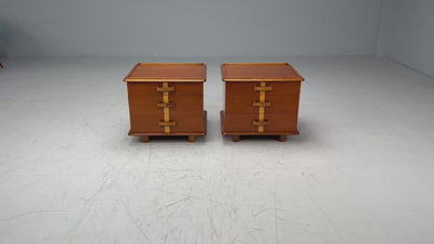Paul Frankl, John Stuart, Rare 'Station Wagon' Nightstands, Mahogany, Rock Maple, Brass, Leather, USA, 1950s
