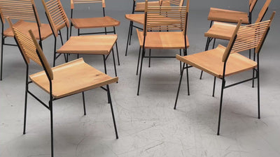 Paul McCobb, American Mid-Century Modern, Maple, Lacquered Iron, Ten "Shovel'" Dining Chairs, USA, 1950s