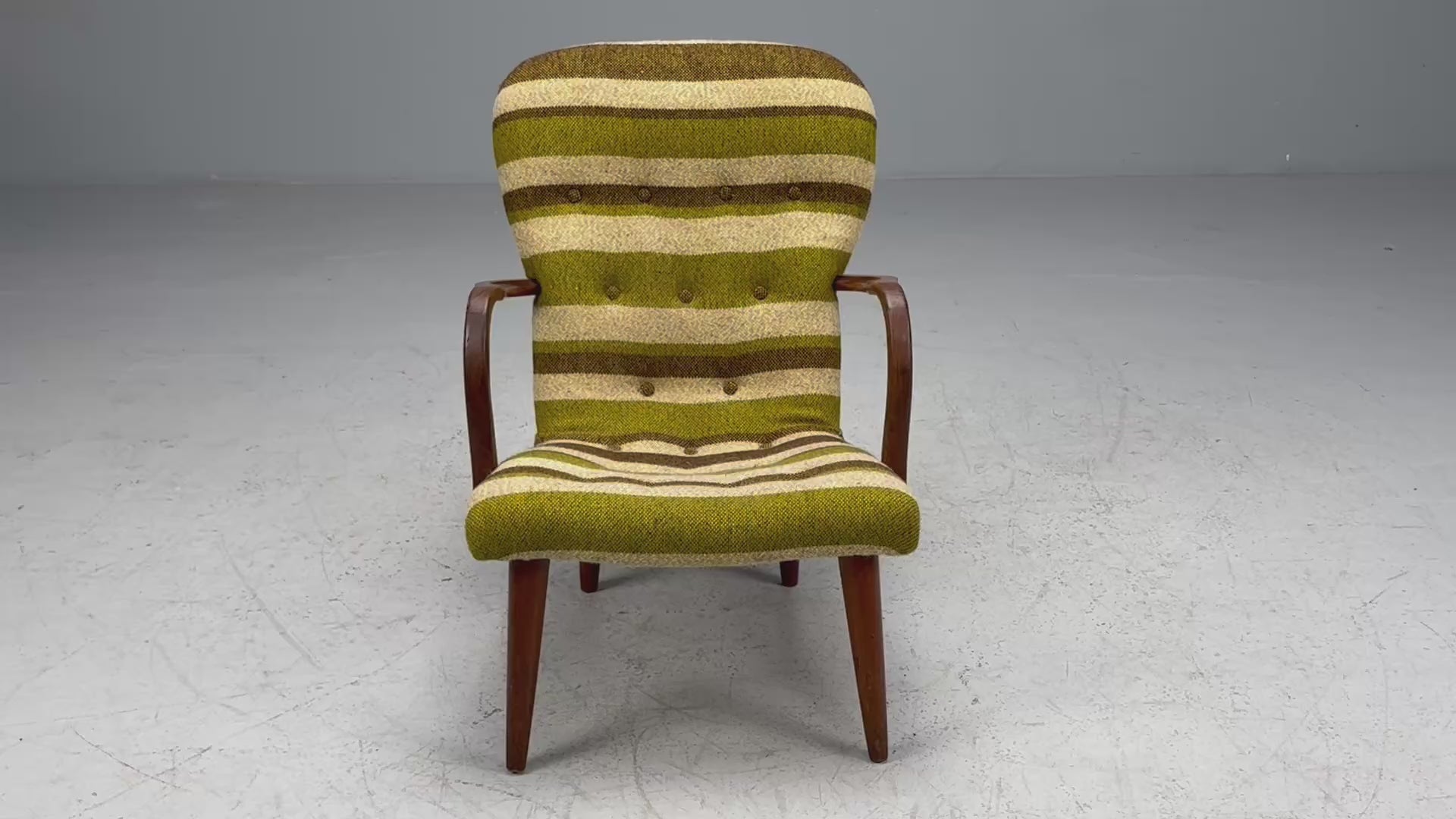 Philip Arctander Style, Danish Mid-Century Modern, Lounge Chair, Striped Wool, Walnut, Denmark, 1940s