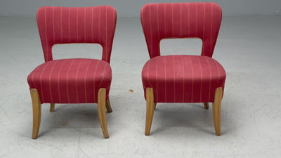Pier Luigi Colli, Maple, Red Fabric, Low Lounge Chairs, Italy, 1950s