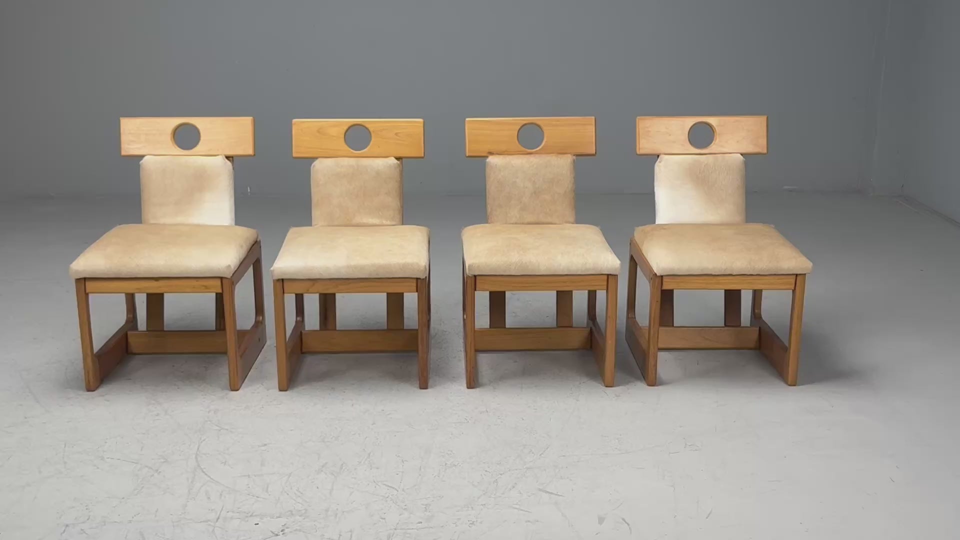 Sergio Rodrigues, Cavoina, Cowhide, Four Cuiabá Dining Chairs, Brazil, 1985