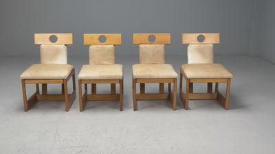Sergio Rodrigues, Brazilian Mid-Century Modern, Cavoina, Biege Cowhide, Four "Cuiabá" Dining or Side Chairs, Brazil, 1985
