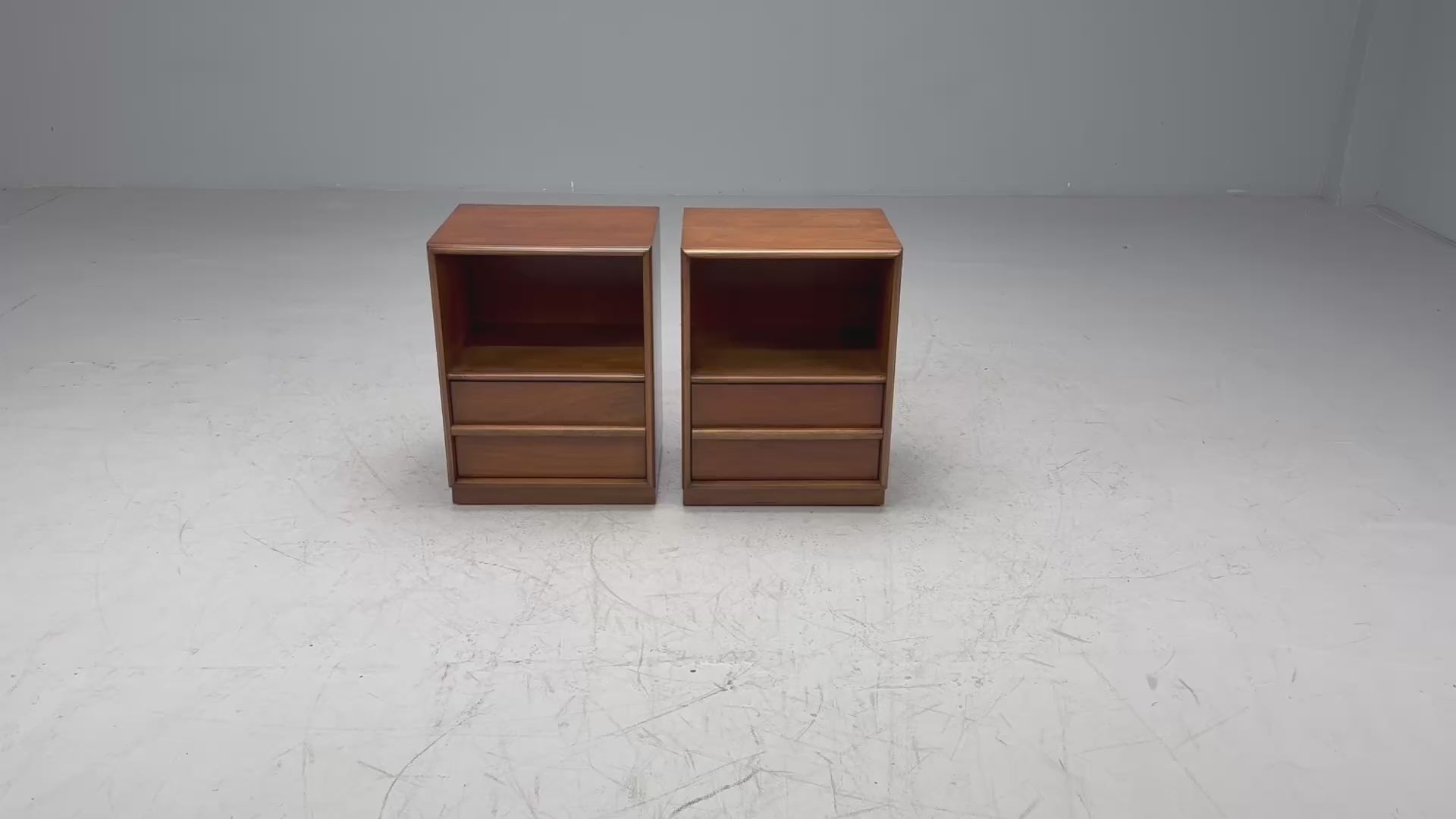 T.H. Robsjohn-Gibbings, American Modern, Walnut, Open Nightstands, USA, 1960s